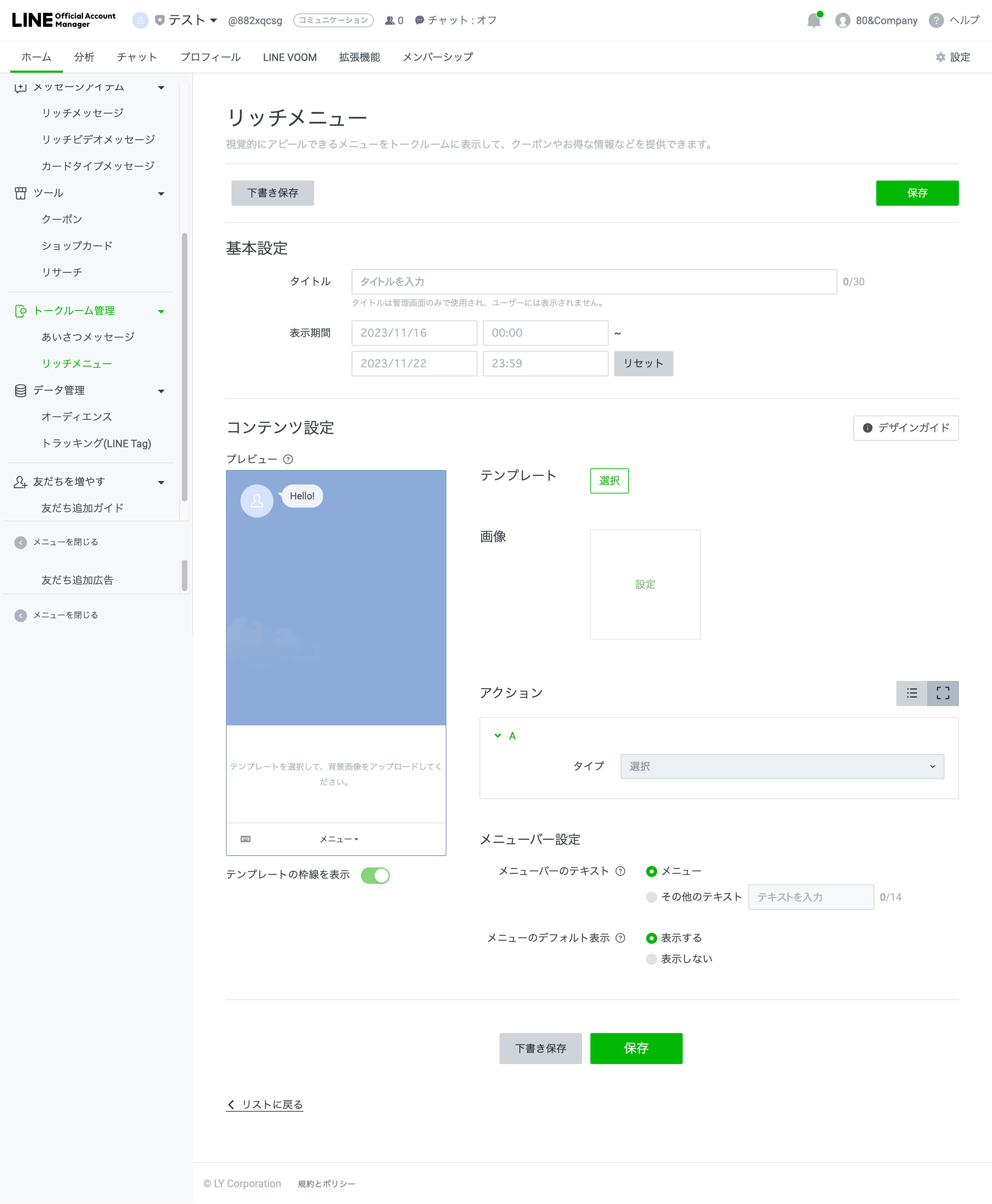 | 表示期間 | リッチメニューの表示期間を入力 |